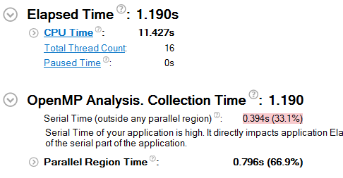 编译,哎呀,编译器说有 dependence. 怎么办呢?我们这会先不管这个 vectorization,先来 profile 一遍并行过的版本。