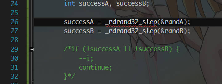 当然了,这里朴素的 rdrand 的用法并不是最优的,因为我偷懒了,只写了这一个朴素的版本,实际上如果加大 pull 的宽度增加线程数量的话,我预估速度在 ~5s 左右,还是比 rand() 要快的。