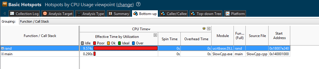 从 hotspot 图中可以看到 rand() 函数占了 9.574s. 那么我们肯定是需要更快的一个 rand.